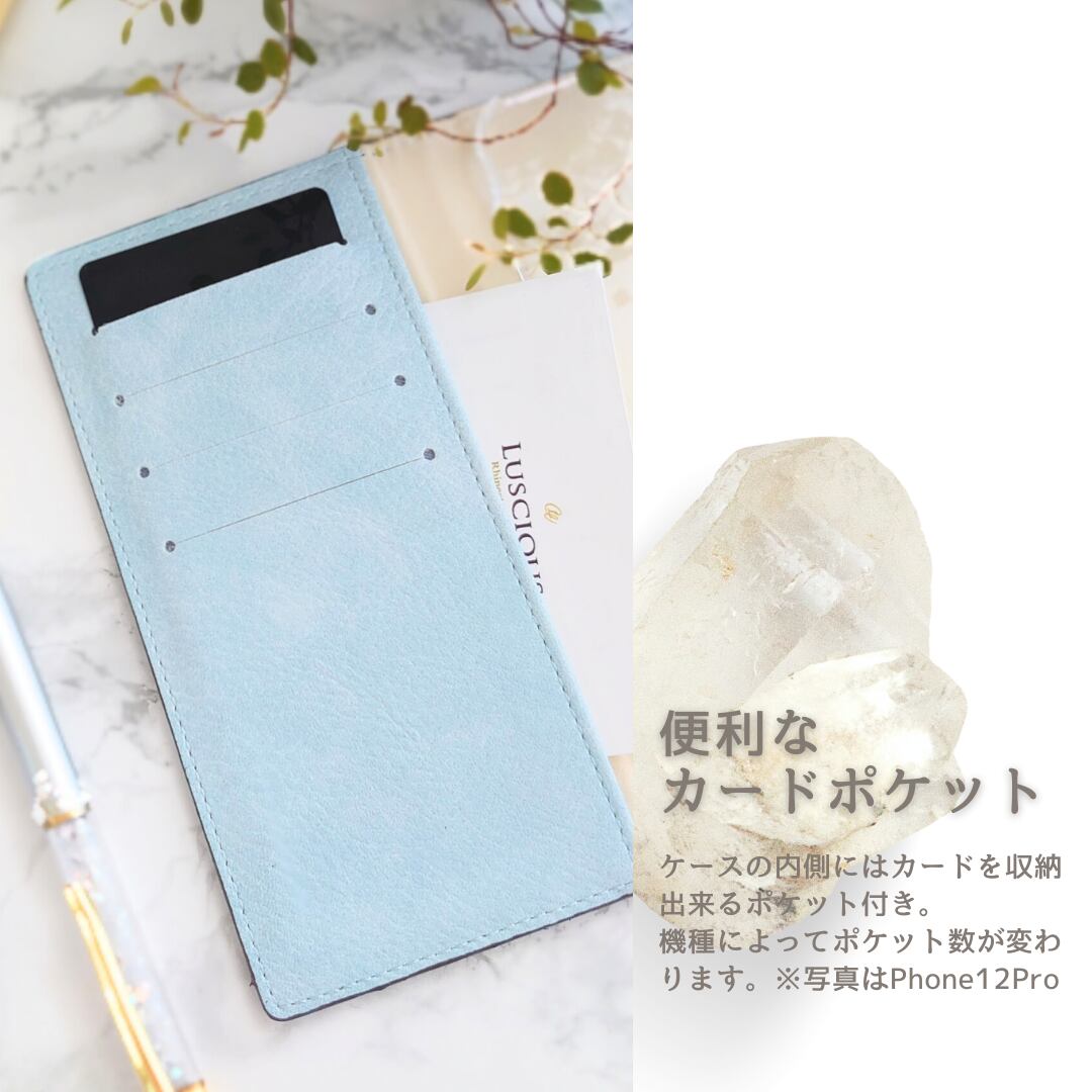 ケース本体は優しいニュアンスレザー(合皮)で、風合いを楽しめる素材になっています。