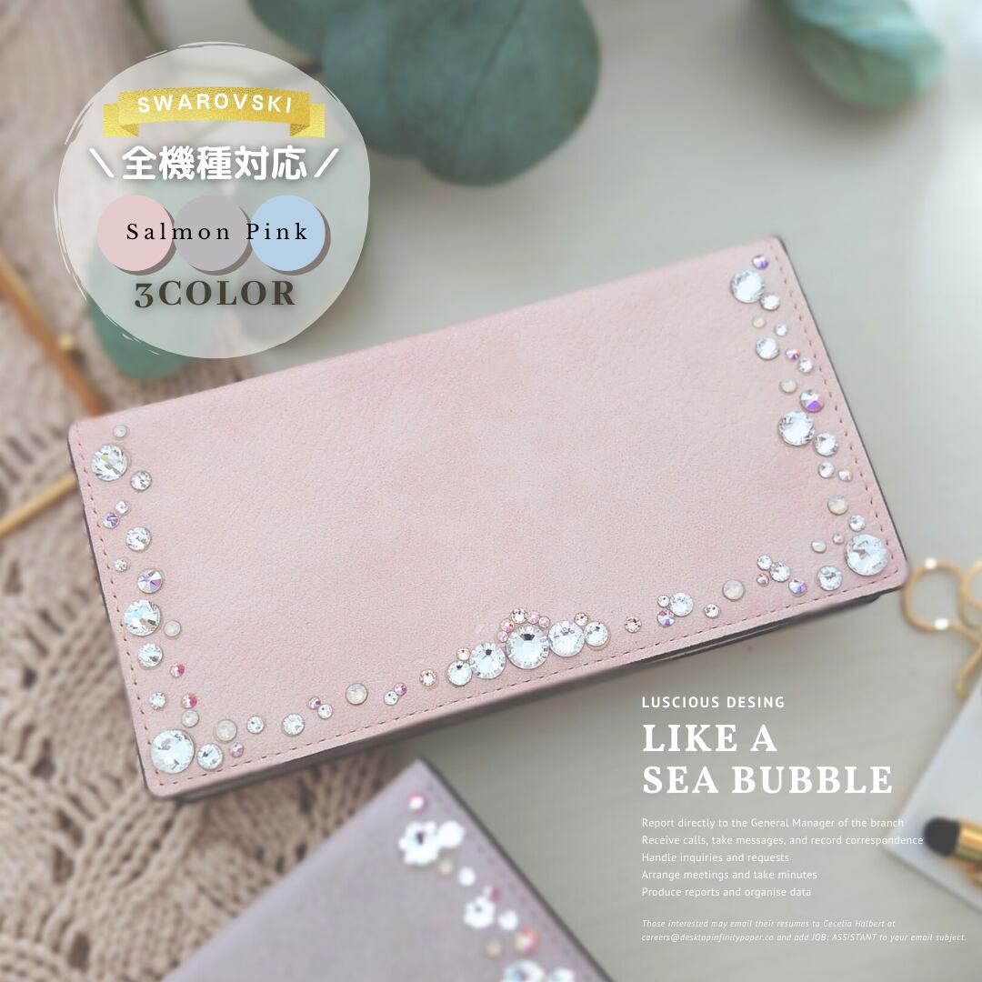 【特別価格】 大粒スワロフスキー キラキラ 大人カラー デコレーション スマホケースサーモンピンク